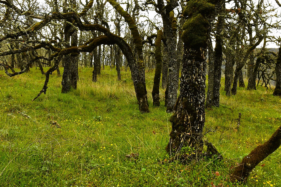 Before long we reached the upper plateau where the views opened up all around us. Birds were flying over our heads and along to our sides as we walked along cliff edges. They loudly called to one another in the strong winds. Dark clouds were moving fast all around us. A light rain sprinkled down on us. Not enough to pull out my rain coat, but enough to put on a stocking cap. As we came to one of my very favorite forests, I enjoyed the signs of spring all around us.