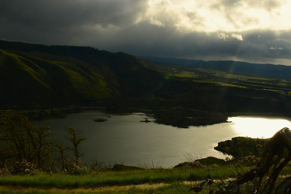 Once it was clear that our intentions were to follow directions to climb and fully commit to another run up the trail, something magical happened. The rain instantly stopped falling and a bright light came down on us from behind. I immediately could feel the warmth on my back and smiled. The colors all around me were changing. I slowly....very slowly.....turned around to look. That is when my soul shattered into a million pieces and floated down the ridgeline and all around us. I am pretty sure some curse words fell out in that process.